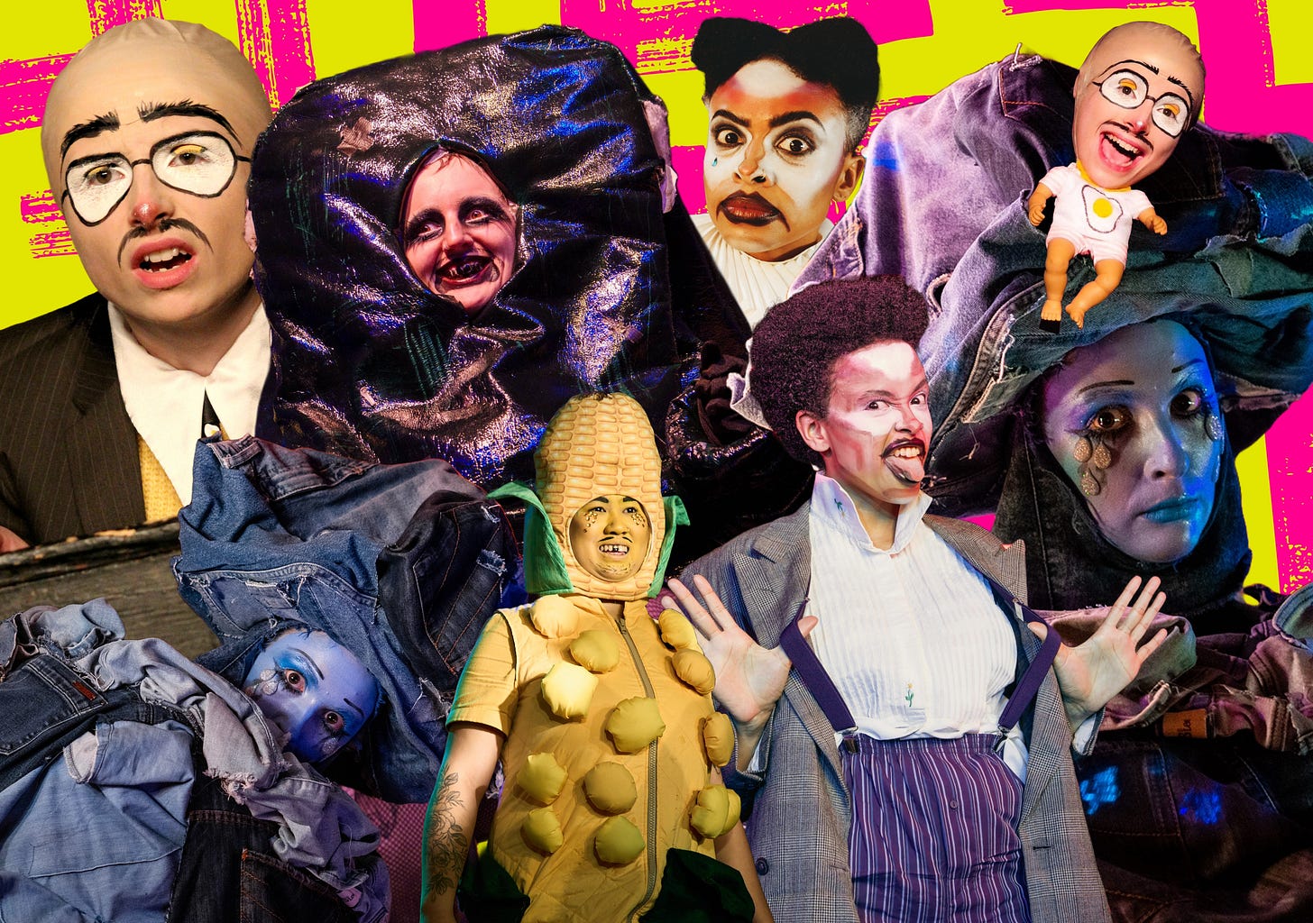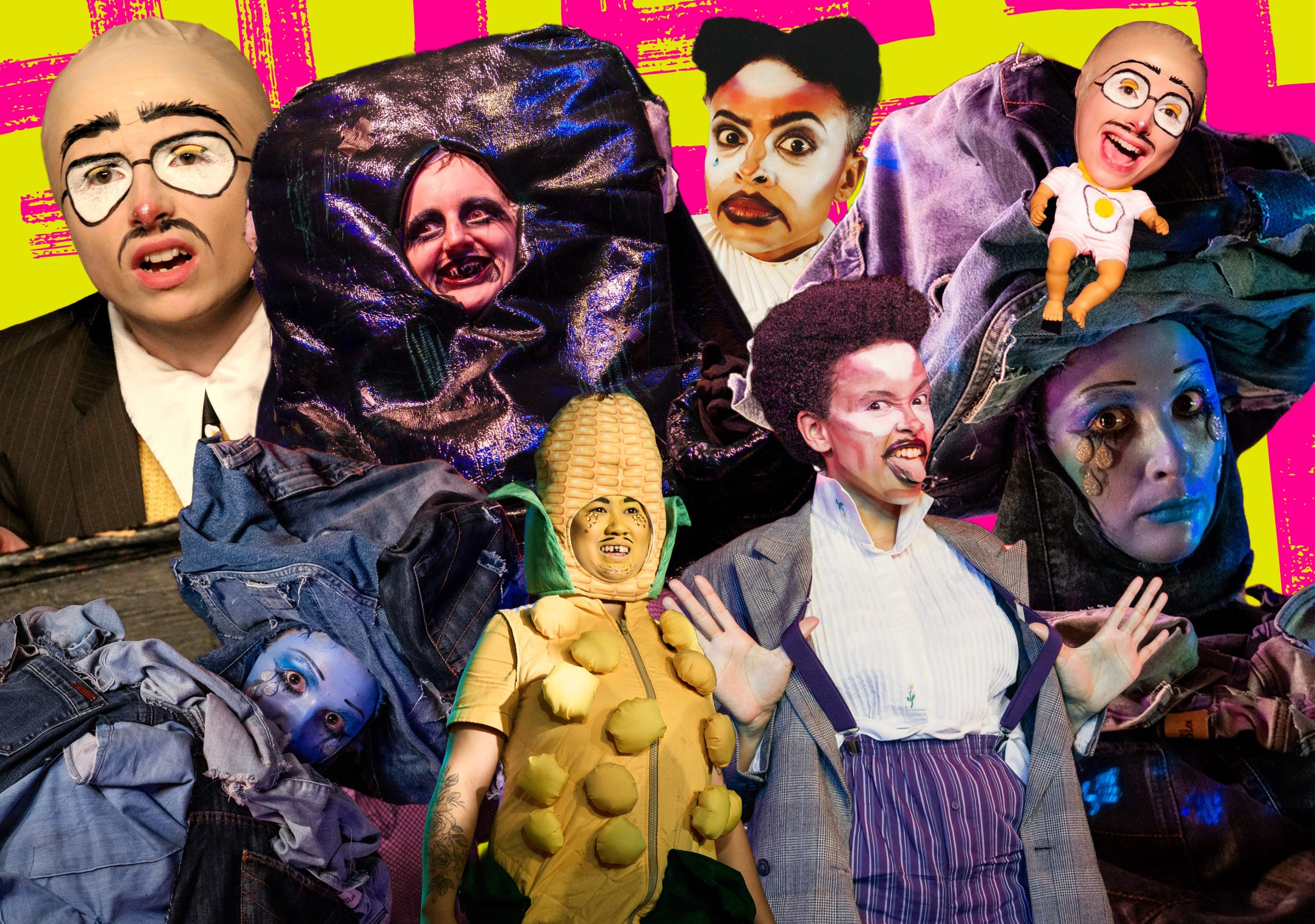 A sofa, an egg, a corn-on-the-cob, a tragic greek clown and a pair of jeans walk into a bar...